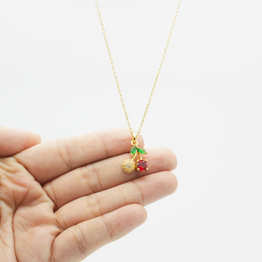 Collar de Cereza con Zirconia Acero