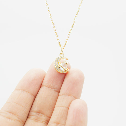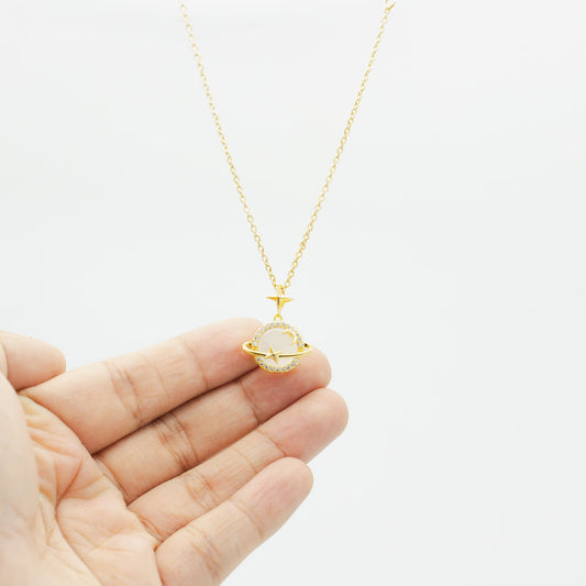 Collar de Luna y Planeta con Zirconia Chapa